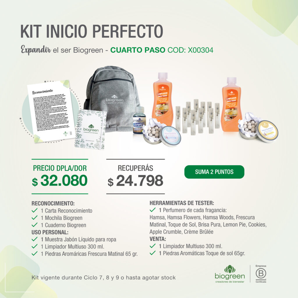 En Biogreen elegimos reconocernos como una empresa de recomendación directa, porque recomendar no es lo mismo que vender. Es experimentar con el producto, conocer sus características, descubrir sus virtudes y beneficios, y el estado de bienestar que podes alcanzar al utilizarlos. Es por ello que podés sumarte a nuestra oportunidad adquiriendo cualquiera de los diferentes kits de incorporación.